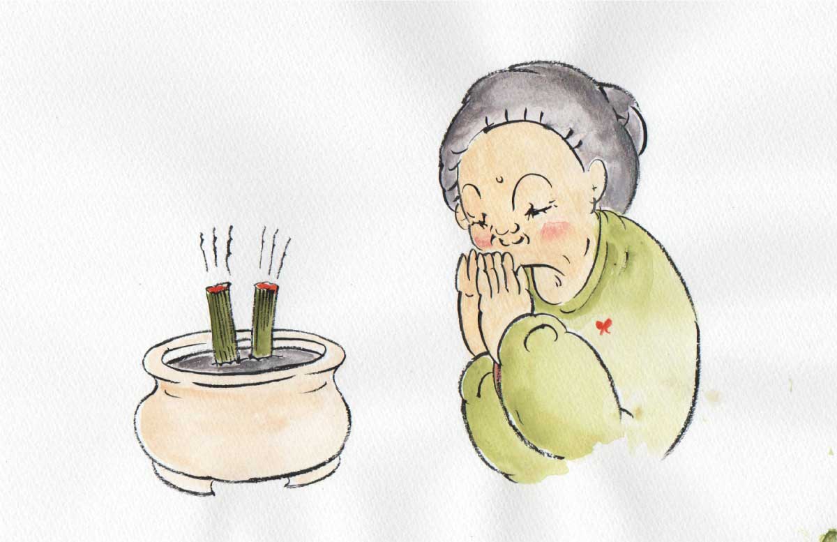 お仏壇では「今日から3日間、真心を込めておもてなしをいたしますので、どうぞお受け取りください。」とお伝えして拝みます。