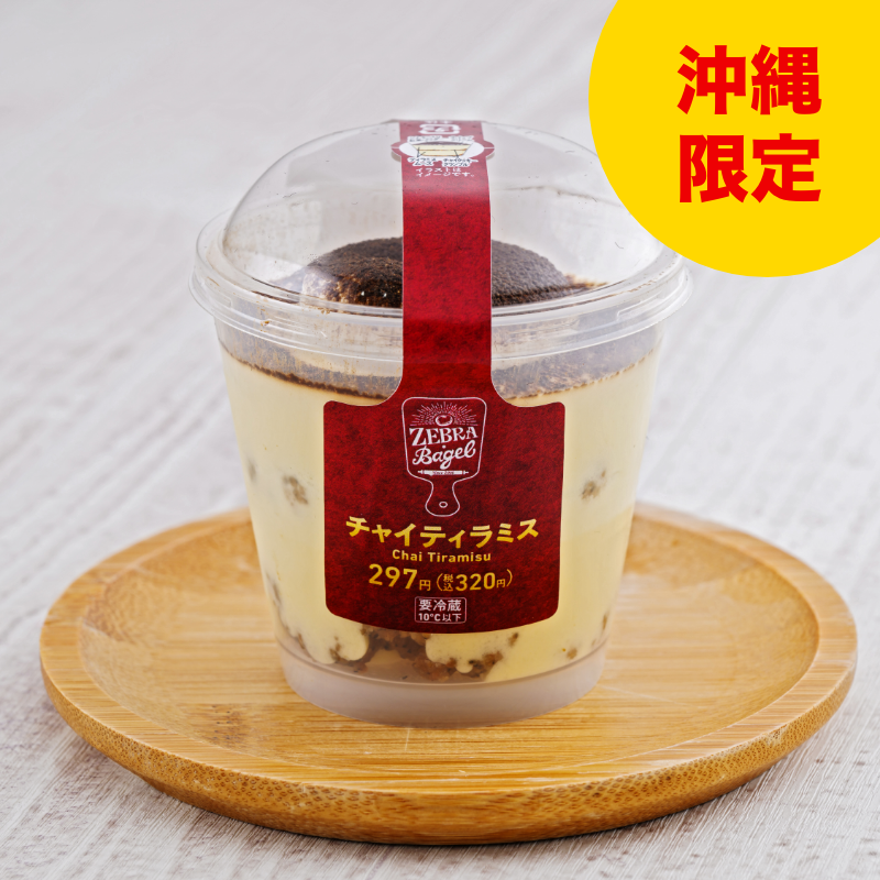 ZEBRA.Bagel監修のコラボ商品。スパイスをきかせた、チャイクッキークランブルとティラミスムースを重ね、シナモン入り紅茶パウダーをかけ仕上げたティラミスです。