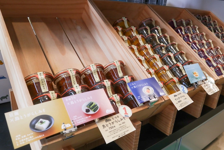 他にも、人気No.2の「マンゴージャム/来間島」やNo.3の「ゴーヤーつくだ煮/伊江島」、紅芋ジャム、パパイヤジャム、オレガノ塩、アーサ塩、食べる生生姜味噌、食べる蕎麦味噌などなど、各島の個性あふれる名産品がズラリと並びます。ぜひいろんな商品を試してみてくださいね♪