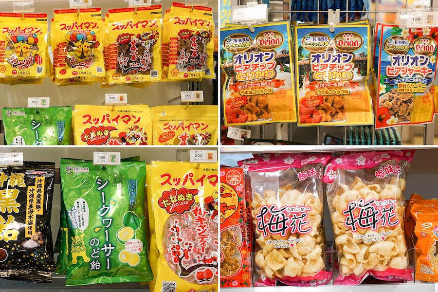 沖縄でロングセラーの乾燥梅干し「スッパイマン(162~540円税込)」、ビールで有名なオリオン発のおつまみ「オリオン ビアジャーキー(148円税込)」、シークヮーサーの酸味が喉にスッとやさしい「シークヮーサーのど飴(204円税込)」、梅肉パウダーの酸っぱさがクセになって止まらない「梅花(118円税込)」など、金城さんもおすすめし切れないほど様々な商品を展開中です。