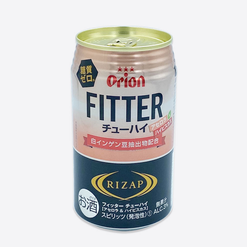 オリオンビールとRIZAPのコラボ商品。糖質ゼロで、アセロラの甘酸っぱさとハイビスカスの香りが広がる爽やかな味わいです。