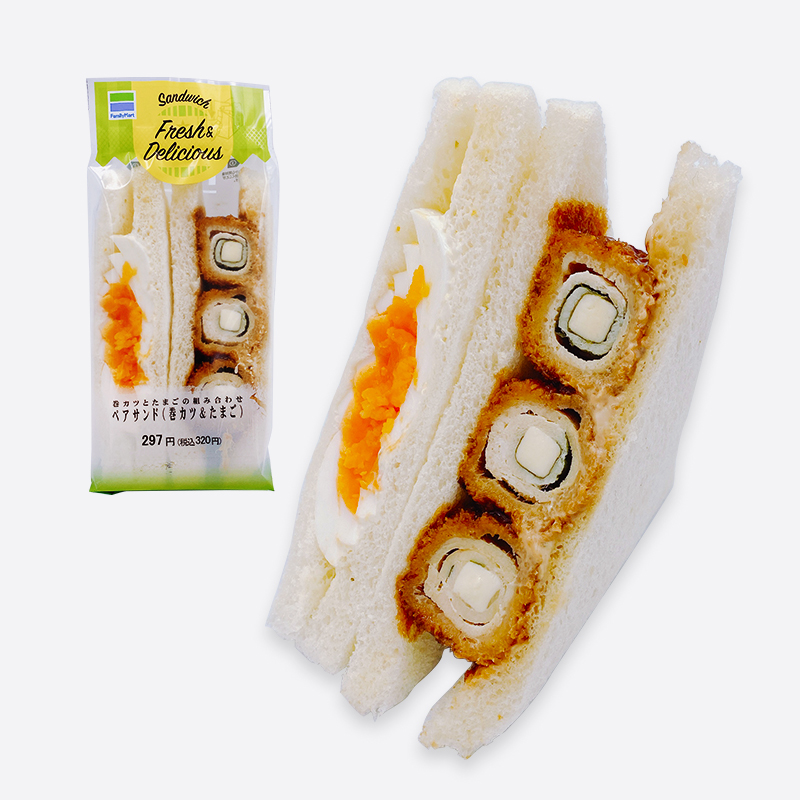 しそ風味のチーズ巻カツと玉子サンドの2種類の味が楽しめるペアサンドです。