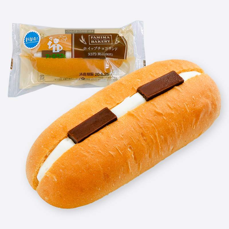 ほんのりバニラ香るしっかりとしたロールパン生地に口どけなめらかなホイップクリームをサンドし、スティックチョコをトッピングしたコーヒーに合う菓子パンです。
