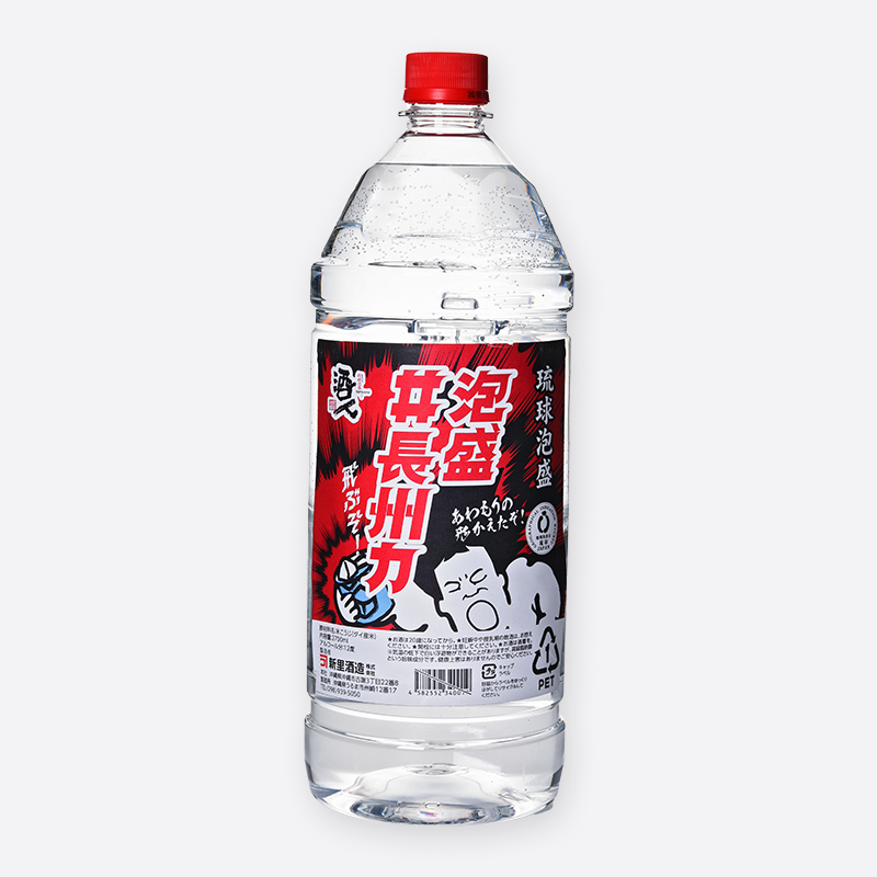 沖縄ファミリーマートオリジナル泡盛「酒人」を使用。アルコール度数12度のままでも、カクテルにしても飲みやすいマイルドな泡盛です。豪快なキャラクター長州力に倣い大容量2.7L!