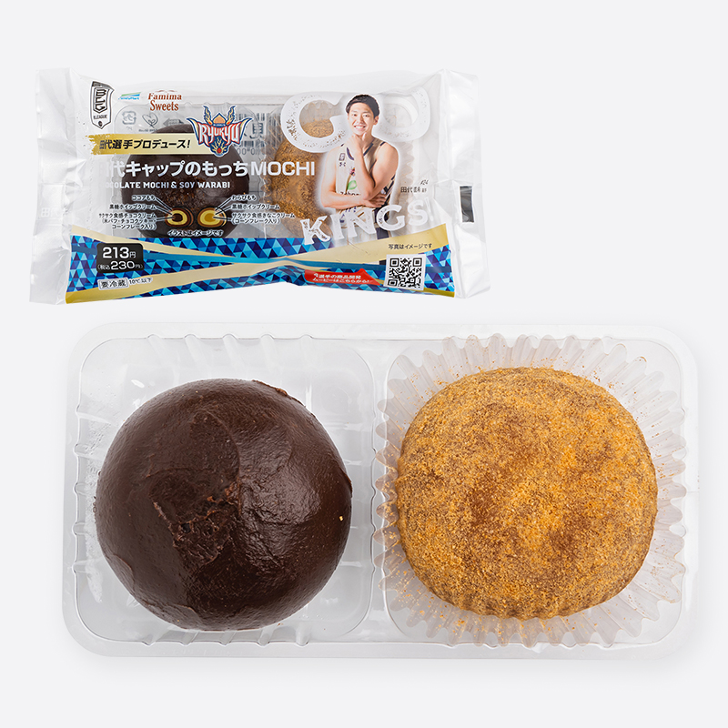 キャプテン田代選手の大好きな「黒糖」と「きなこ」を使ったスイーツ。ホイップクリームやサクサク食感のパフなどを包んだ和洋ミックスな大福2種アソートです。