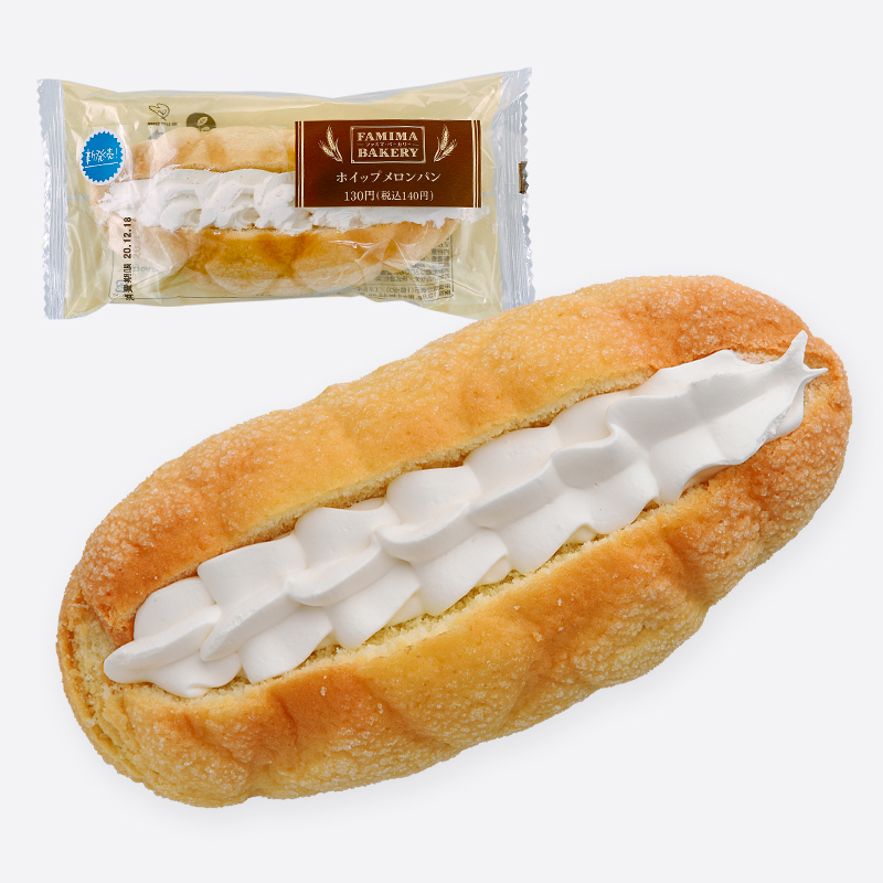 さっくりとしたメロンパンに自家立てのまろやかなホイップをサンドしました。