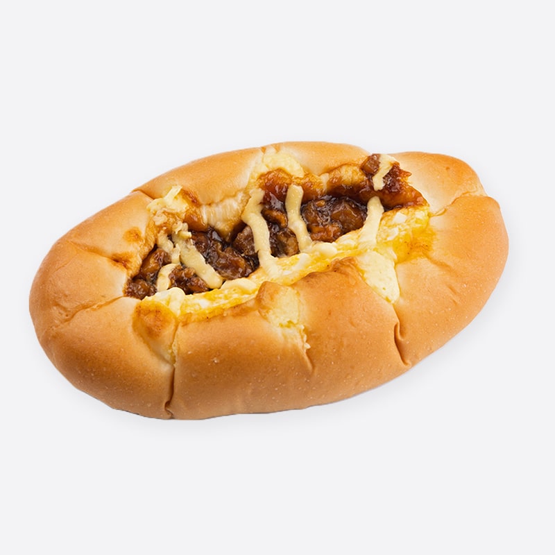 甘辛だれのてりやきチキンとたまごをのせて焼き上げた惣菜パンです。