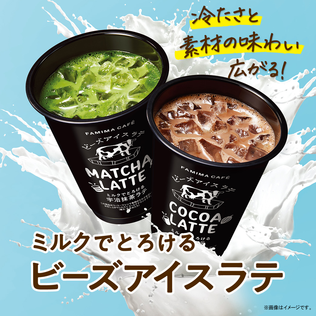 ※ビーズアイスラテ発売を記念して3月30日(火)〜4月12日(月)まで、アイス抹茶ラテ、アイスココアラテが20円引きとなります。