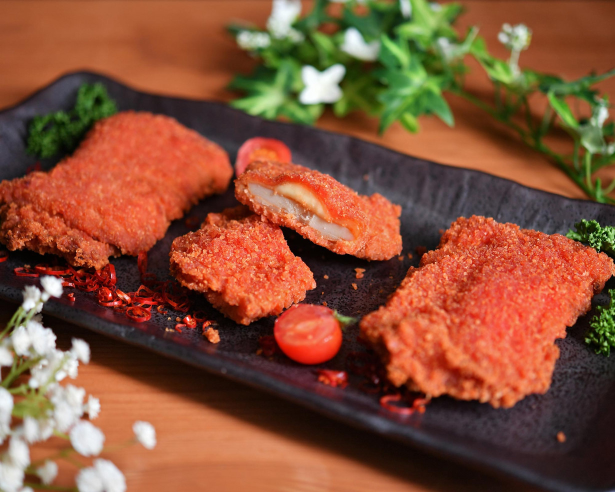 ジューシーなファミチキに濃厚なチーズとピリ辛明太子をサンドしました。明太子はかねふく明太子を使用してこだわりました。「ファミチキ×チーズ×明太子」のおいしさをご堪能ください。