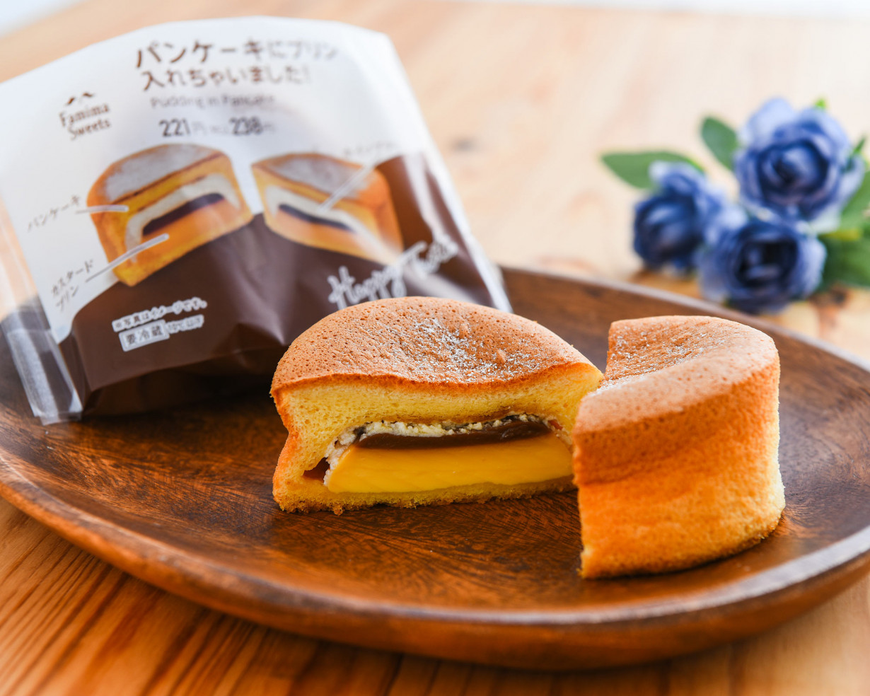 今回のおすすめは、パンケーキにプリン入れちゃいました! 各238円(税込)。