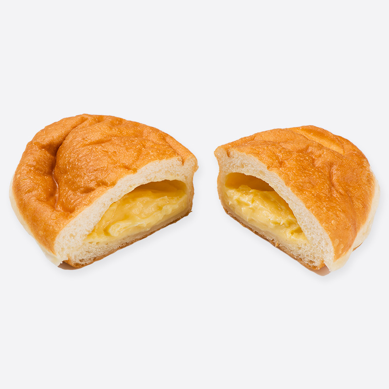 北海道産牛乳を使用したバニラビーンズ入りカスタードクリームが入ったふんわりもちっとしたドーナツ。