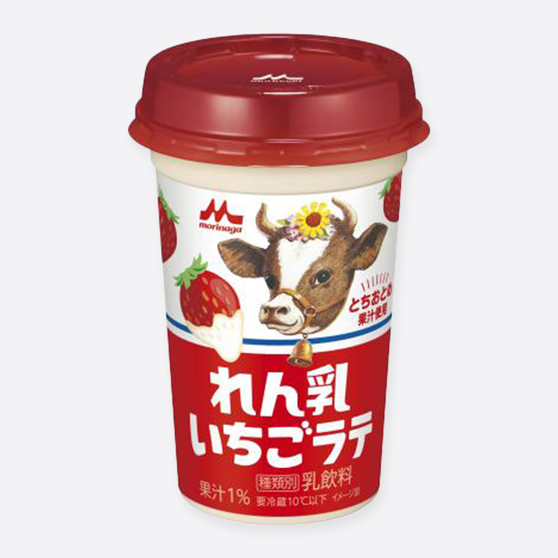 【ファミリーマート限定】好評だった「たーっぷりミルクの練乳ラテ」がいちごフレーバーになって新登場。国産とちおとめ果汁を使用し、練乳との相性は抜群。