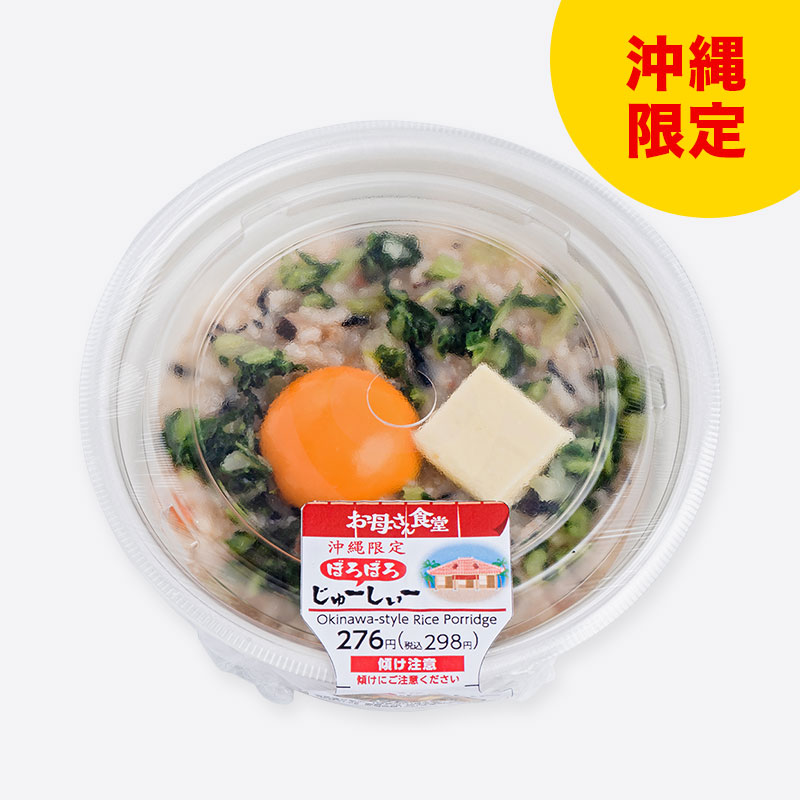 沖縄の家庭料理、ぼろぼろじゅーしぃーを商品化。だしの効いた味わいに、バターと卵黄をトッピングしコクと旨みをプラスしました。