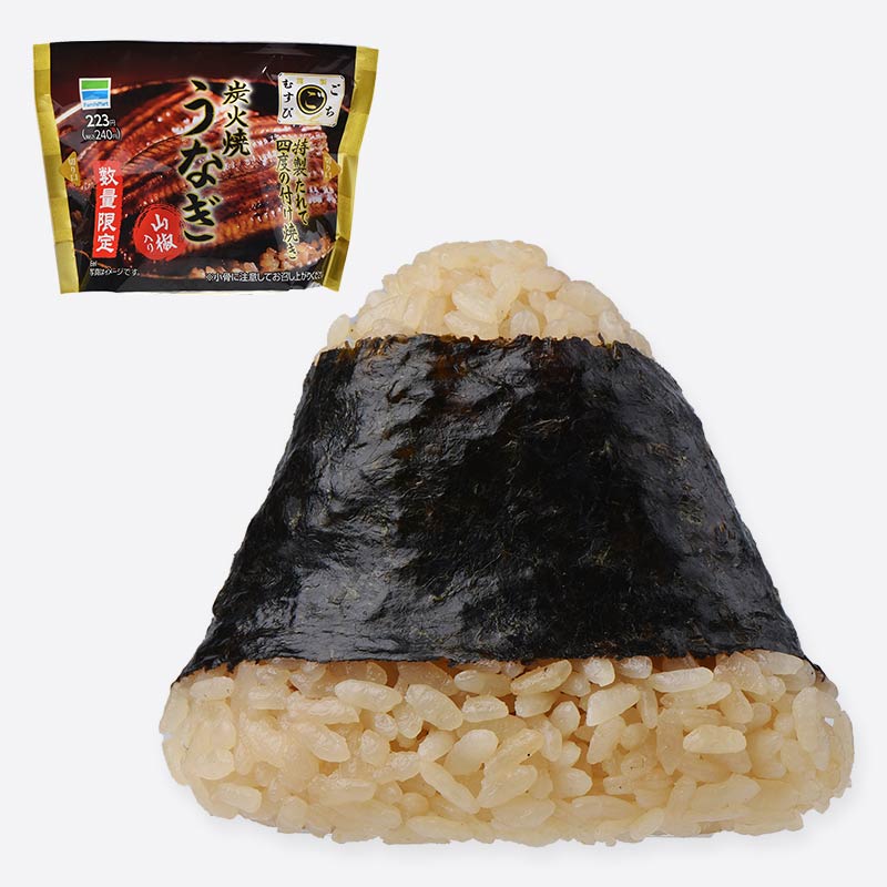 四度のたれ漬け焼きをして旨味を染み込ませ、炭火で焼きあげたうなぎを包んだおむすびです。