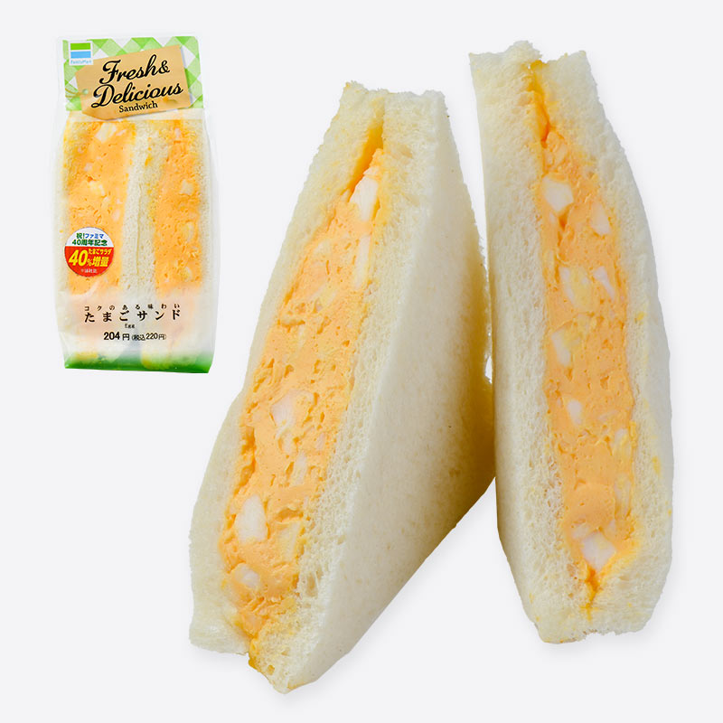 40%増量作戦対象商品。たまごのコクと風味が感じられるたまごサラダを期間限定で40%増量。