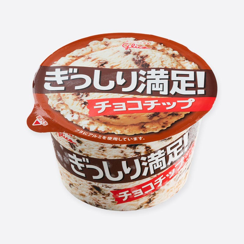 【ファミリーマート限定】「ぎっしり満足」シリーズからチョコチップ味が登場。パリパリした食感のチョコチップが、バニラアイスにぎっしり詰まったカップアイスです。