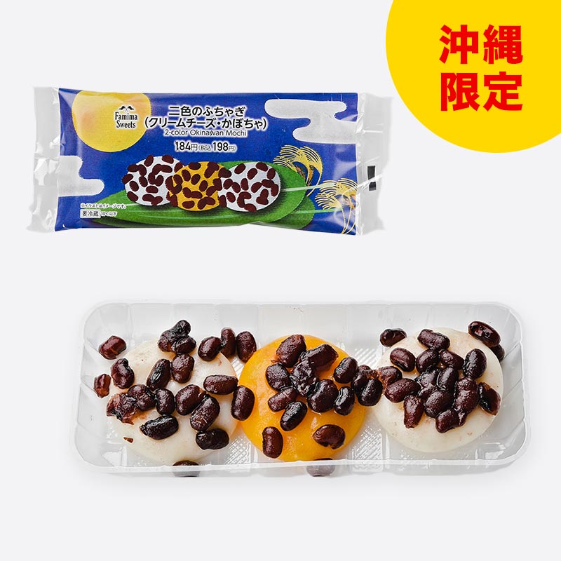 沖縄の伝統菓子「ふちゃぎ」を手軽においしくアレンジしました。クリームチーズとかぼちゃの2種類のおもちが楽しめます。