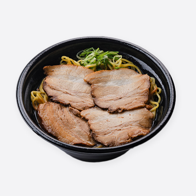 魚介だしが効いた、すっきりとした淡麗系の醤油スープに、柔らかい直火焼チャーシューをトッピングした醤油ラーメンです。