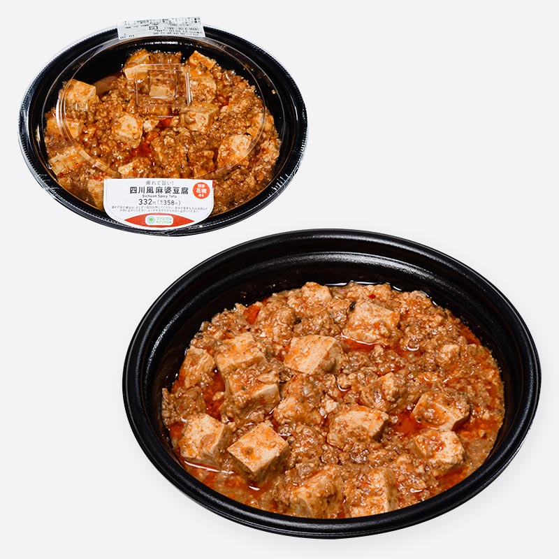 コクのある豆鼓で作った中華醤を使用し、味に深みを出した麻婆豆腐。別添小袋の花椒を付けることで、華やかな花椒の香りと、痺れる美味しさをより感じていただける商品です。