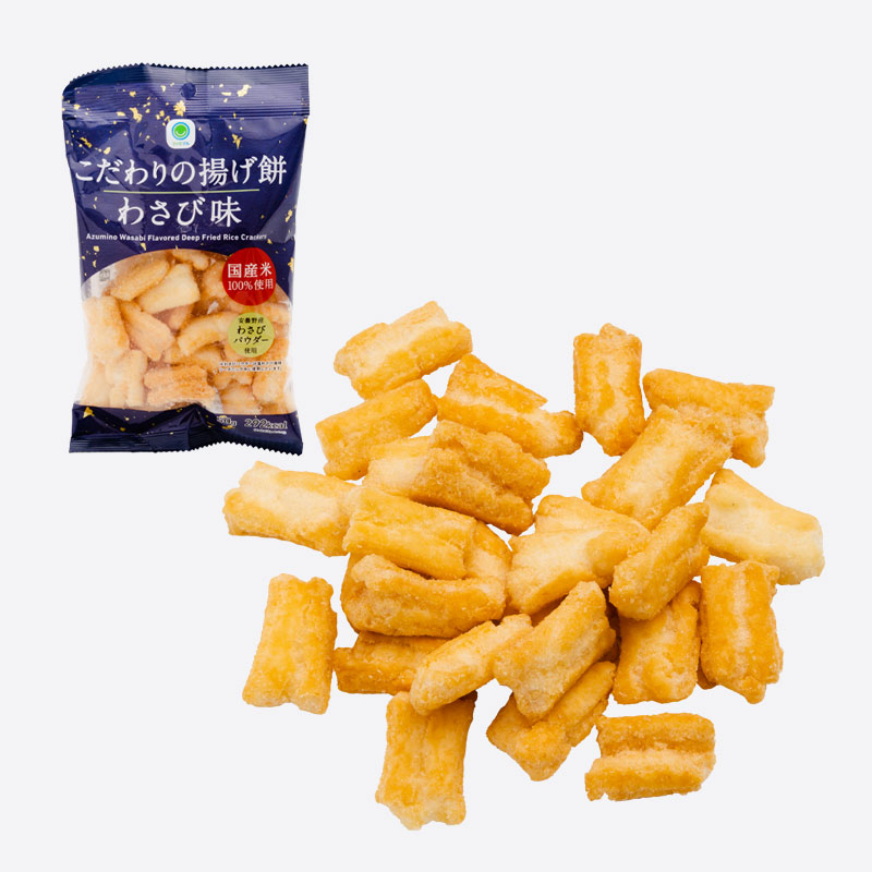 ファミリーマート限定・ファミマル新商品。安曇野産わさびを使用した清涼感のある刺激と旨みある味わいが特長のサクッとやわらかな食感の揚げ餅です。