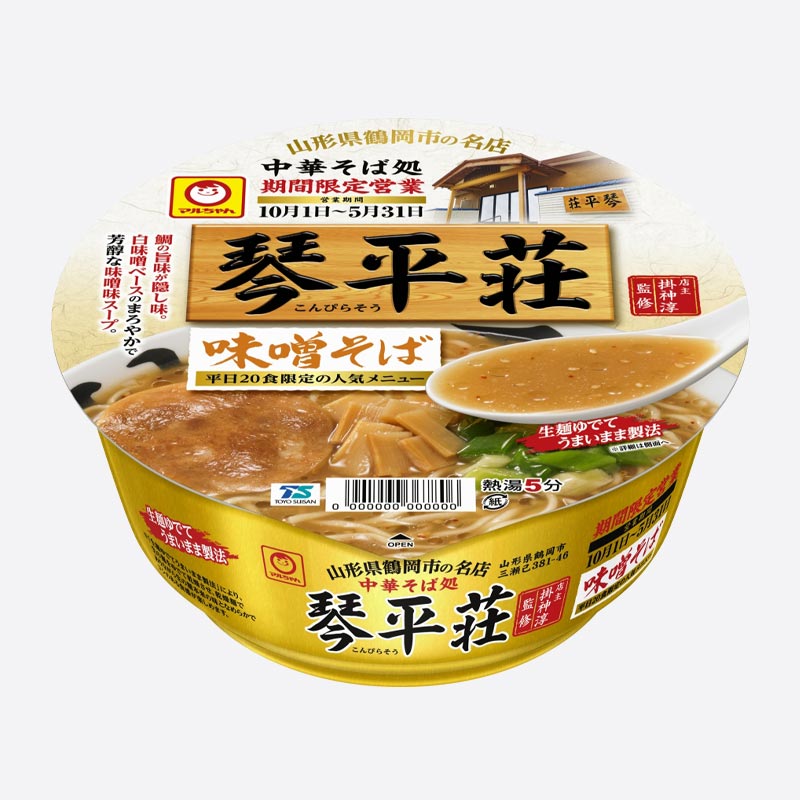 山形県の期間限定営業の人気店「中華そば処 琴平荘」監修の「味噌そば」が登場しました。まろやかでありながら、鯛の旨味と味噌の芳醇なコクが特長です。