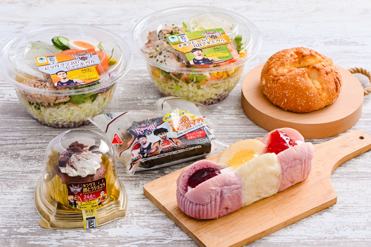 今回のおすすめは、「ボクたち、みんなと作っちゃいましたキャンペーン」琉球ゴールデンキングス選手プロデュース商品です。キングス選手とのコラボ商品試作会議をWEB上で公開し、みんなの投票で発売商品が決定しました!「エバァ岸牛肉焼サンド」、「ファンタジスタ・トリプルJAMブレッド」、「ゴールデン・最コー・ガーリックパン」など全6アイテムを販売中です。