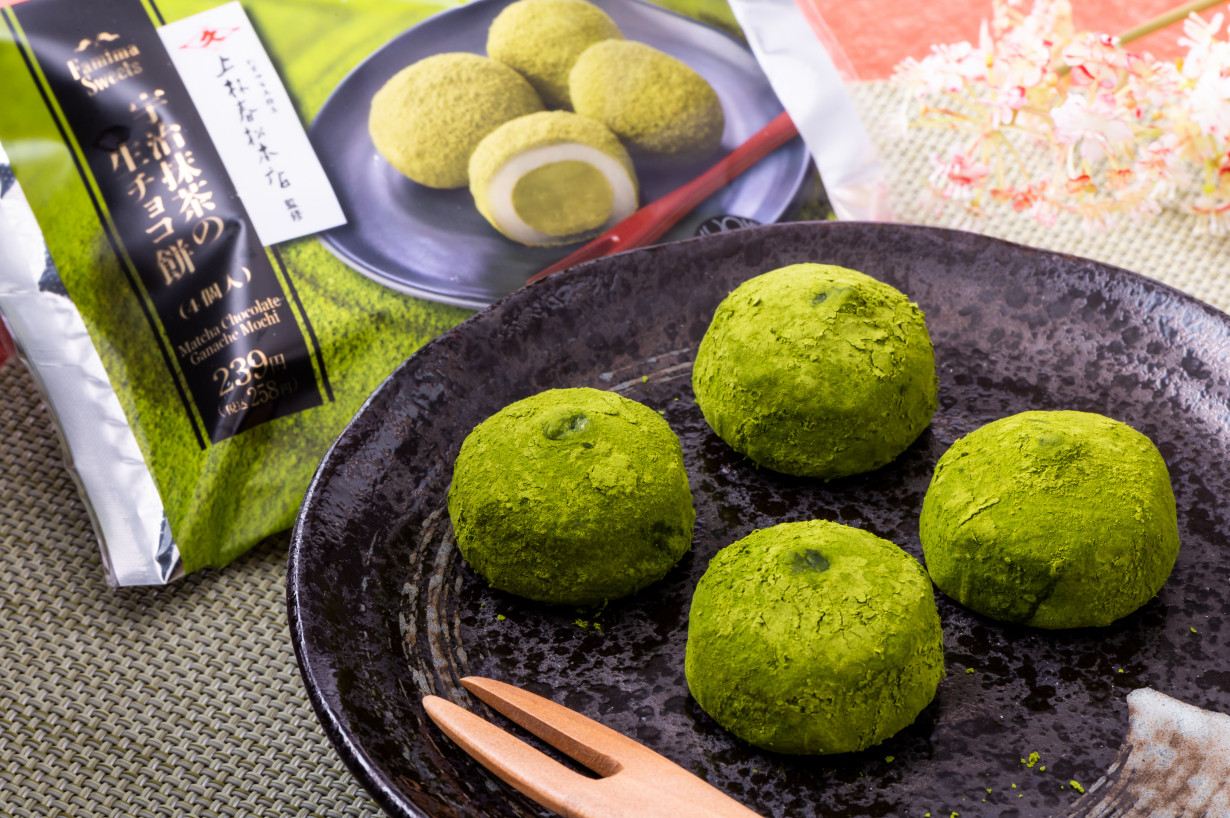 また、「宇治抹茶の生チョコ餅(4個入り)」もおすすめです。上林春松本店監修。北海道産生クリームを入れた抹茶生チョコをもち生地で包んだ、一口サイズの抹茶生チョコ餅です。こちらも「宇治抹茶まみれ」対象商品です。
