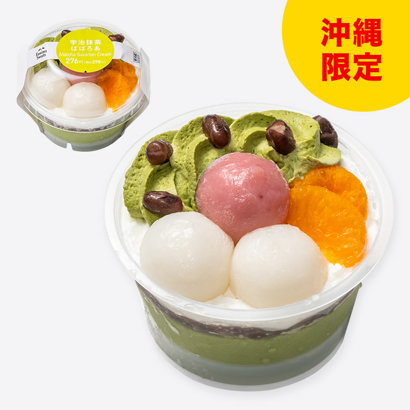 宇治抹茶ばばろあに、粒あん、ホイップクリームを絞り、白玉もち、みかん、かのこ小豆をトッピングしました。