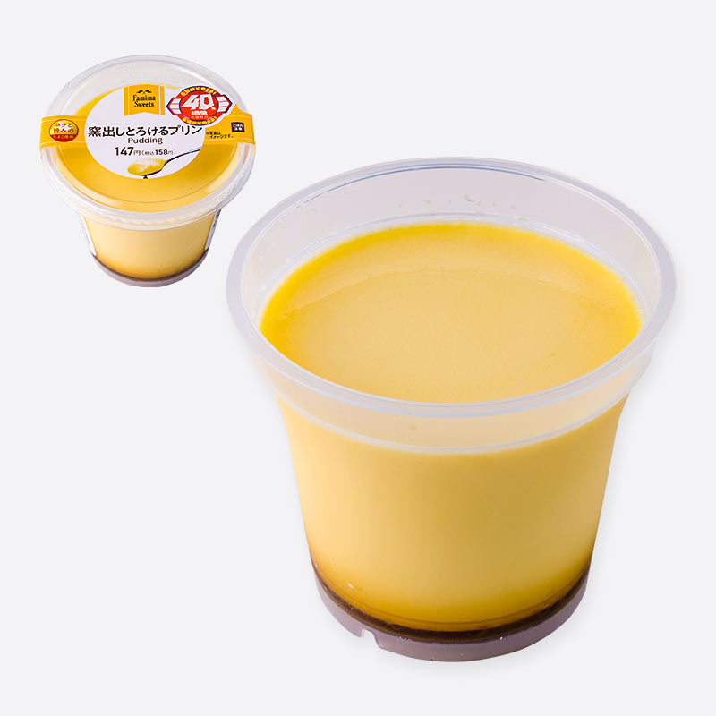 「40%増量作戦」対象商品。お値段そのまま、期間限定で内容量を40%増量しました。「コクと旨みのたまご」や北海道産生クリームを使用した、なめらかな食感のプリンです。