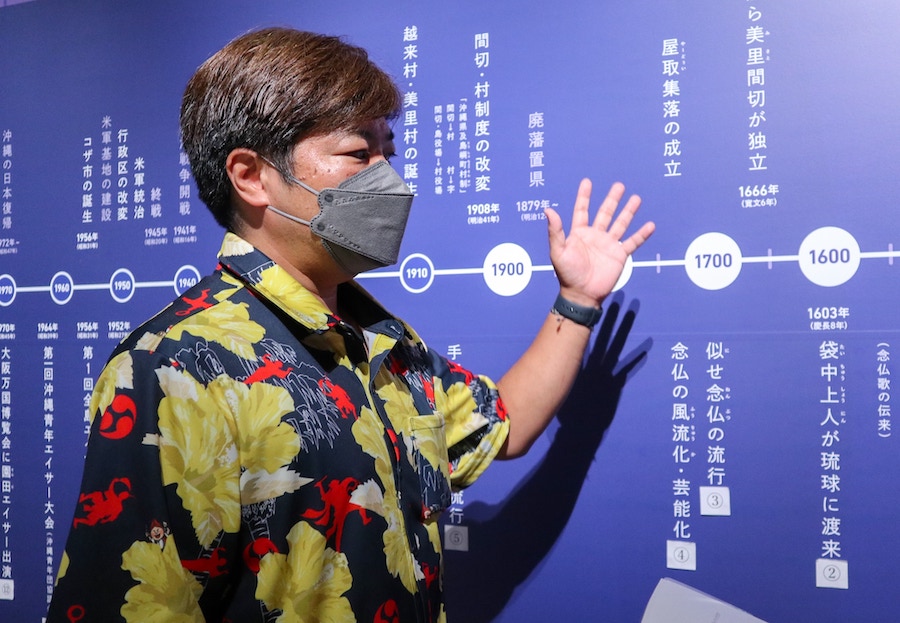 エイサー会館には、エイサーの歴史が壁一面に記されたコーナーが!