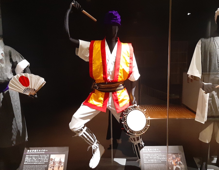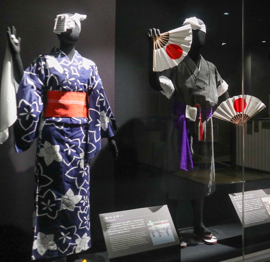 もともとエイサーのスタンダードはこちらの浴衣のような衣装です。沖縄市の衣装が先ほどの形に変わっていったきかっけは「全島エイサーコンクール」でした。