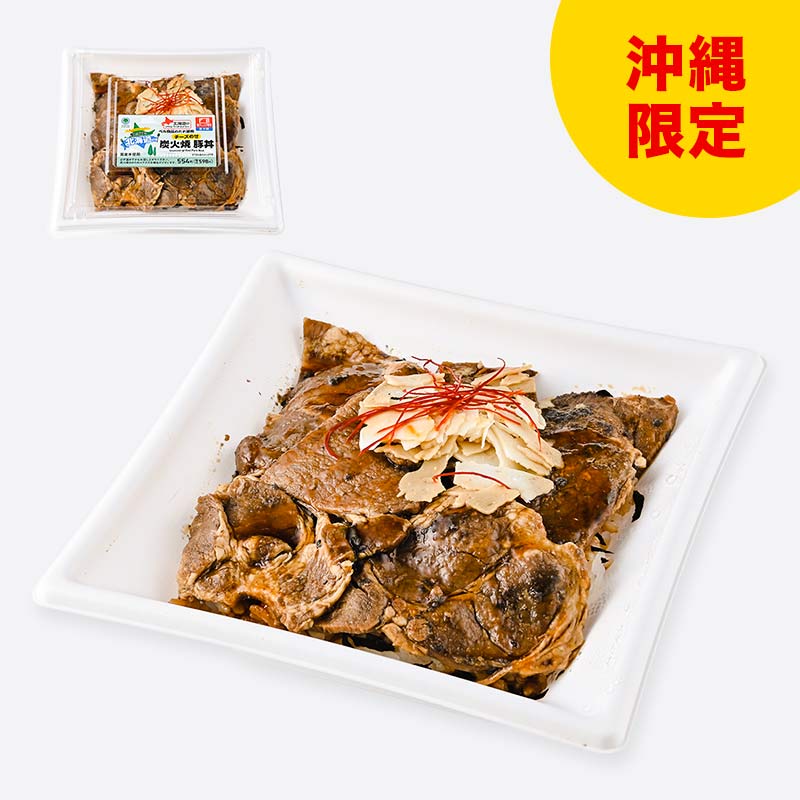 【オキナワファミマの推し!グルメ!!北海道編 対象商品】 炭火焼した豚肩ロースに、北海道のソウルフードメイカー「ベル食品」の豚丼のたれを使用。北海道産のパルメザンチーズを削ってトッピングしました。