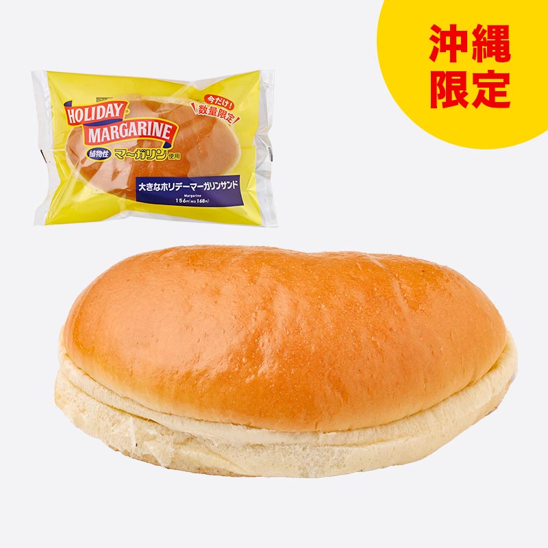 昔懐かしい、長年県民に愛されているホリデーマーガリンを使用。大きなコッペパンにホリデーマーガリンと砂糖をサンドした、甘じょっぱい味わいが特長のパンです。※数量限定。