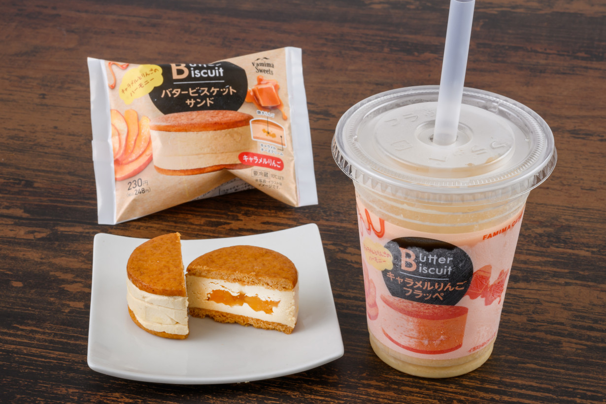また、人気のフラッペとバタービスケットサンドがコラボ!「キャラメルりんごフラッペ」、「バタービスケットサンド キャラメルりんご」もおすすめです。