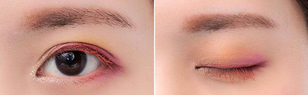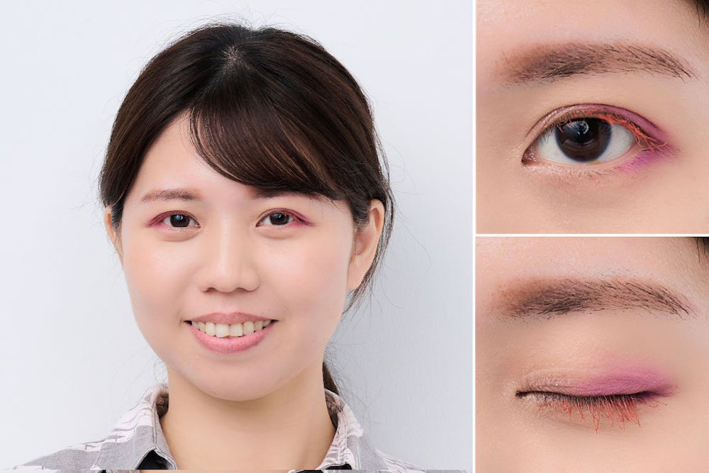 まぶた全体にピンクを入れると派手になりますが、目尻だけなら取り入れやすく、さらに切れ長な目になりますよ!
