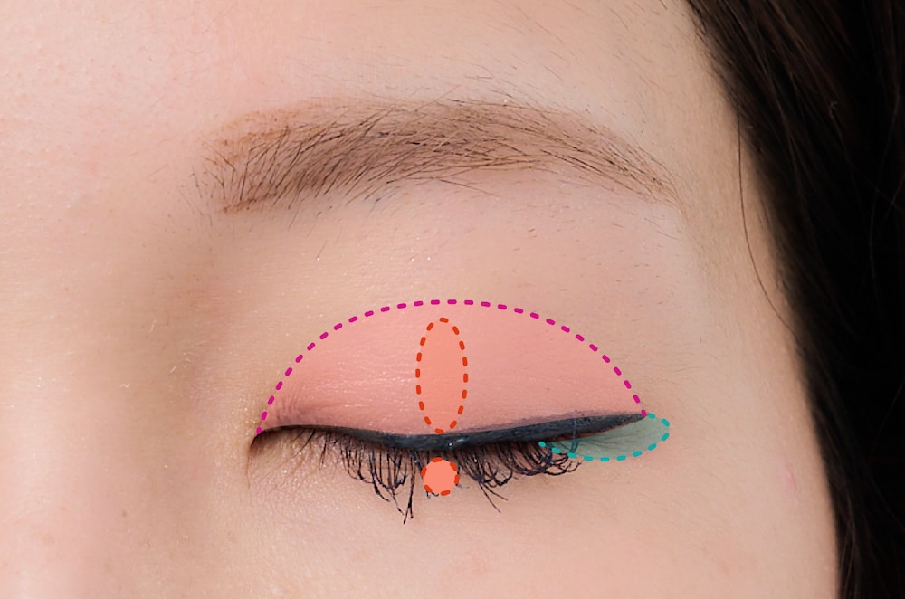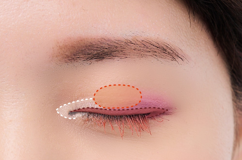 1. アイパレット右上のピンクを目尻に入れる