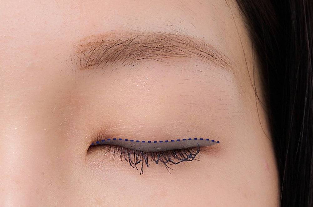 アイライナーを目尻より長めに入れることで、カラーがしっかり見えます。もちろん切れ長効果も!