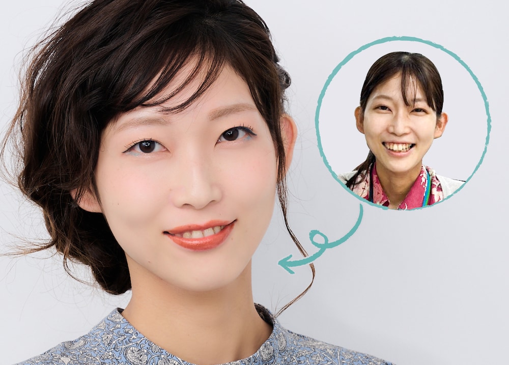 ということで、與那嶺さんにオフィス向けのブラウン系ナチュラルメイクをしていただきました▼