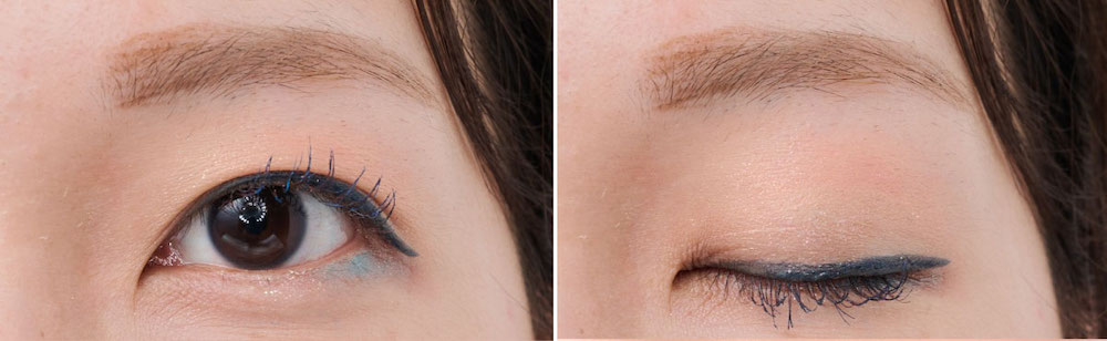 1. アイライナーを目頭から目尻の少し先まで引く