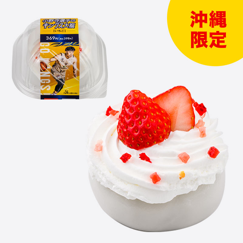 【琉球ゴールデンキングスコラボ商品】 大福にフレッシュないちごをまるごと1個トッピングし、中に粒あんを包んだボリュームのある大福です。