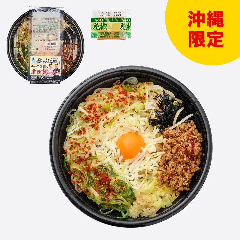 「麺やKEIJIRO」で過去に好評だった商品を、沖縄ファミマ限定で復刻!たまり醤油や出汁の効いたタレに黒マー油、肉そぼろ、にんにく、花椒とチーズを合わせた、旨辛でクセになる味わいです。