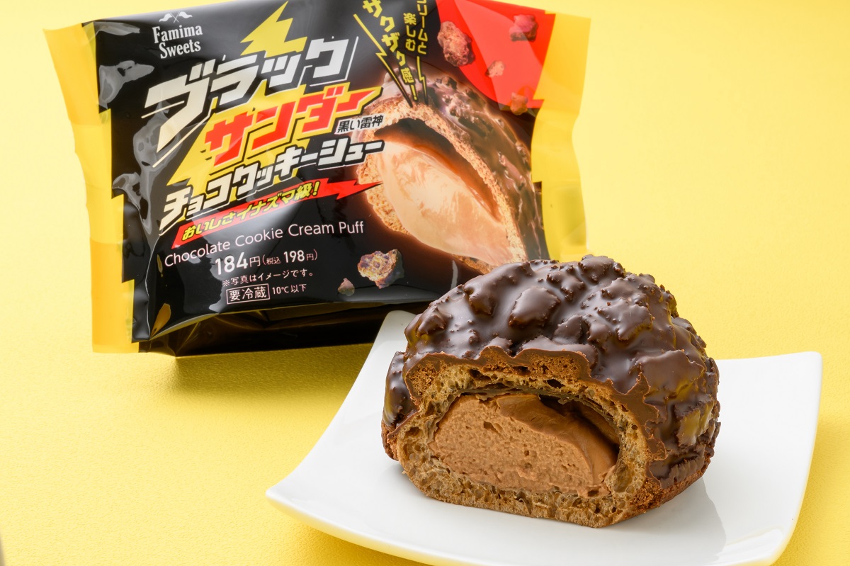 また、ブラックサンダーとファミリーマートがコラボ!「ブラックサンダークッキーシュー」もおすすめです。ブラックサンダーのような食感を表現したココアクッキー生地のチョコクッキーシューです。