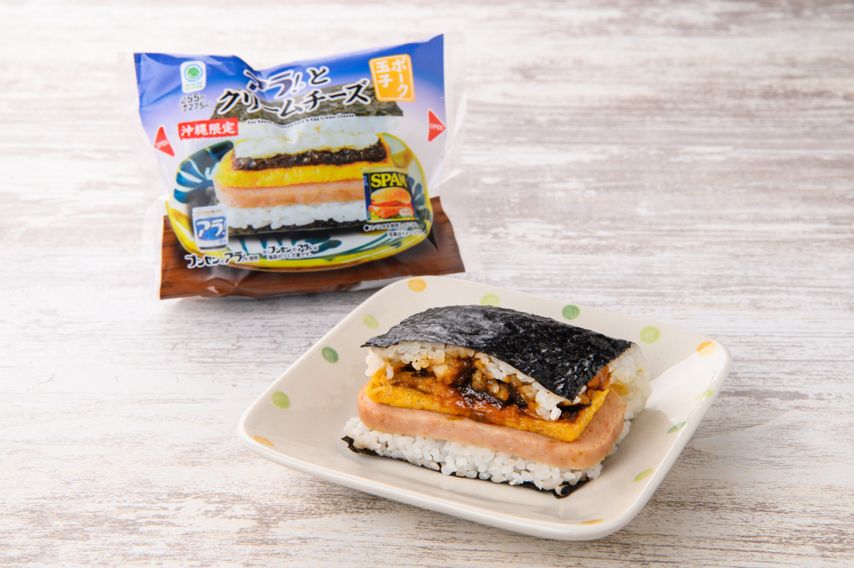 今回のおすすめは、「ポーク玉子アラ!とクリームチーズ」。「アラ!」を使ったポーク玉子の第2弾!のりつくだ煮「アラ!」と相性のよいクリームチーズをトッピングしたサンドおむすびです。