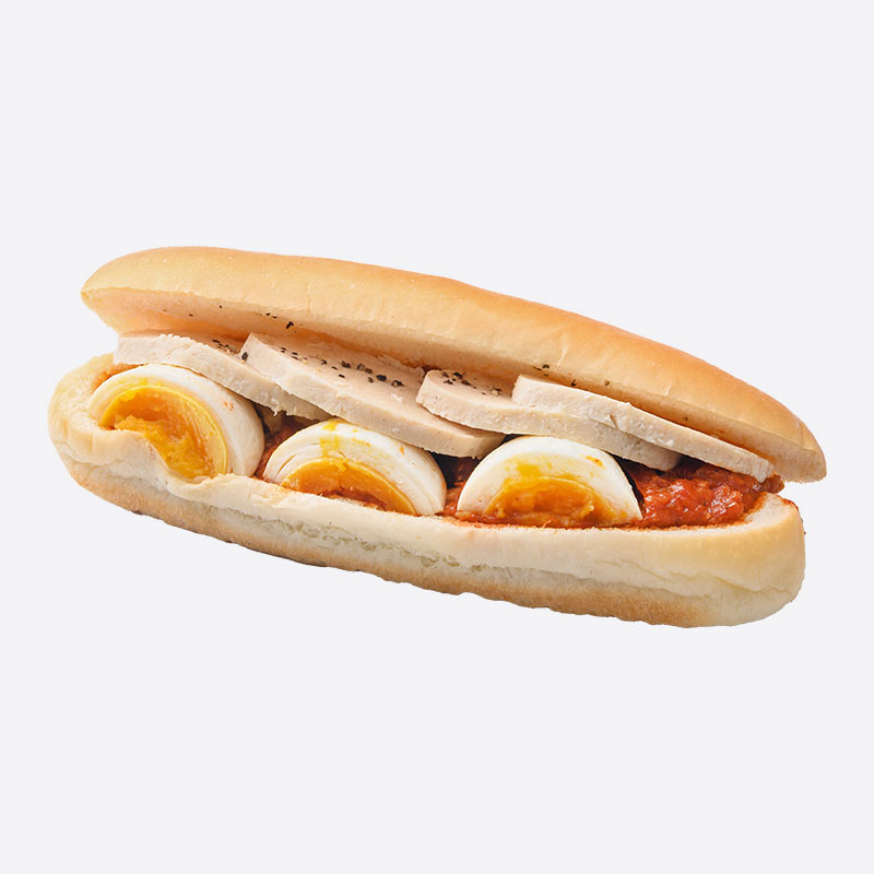 サラダチキンとゆで卵を組み合わせた、手軽にたんぱく質が摂取できるサンドイッチです。