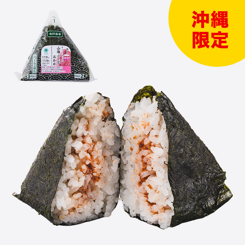 酸味のある山海ぶしと、旨味がきいたおかかを組み合わせたおむすびです。