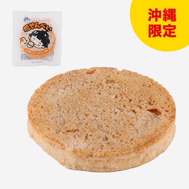 「那覇市長賞 特別賞」受賞商品。昭和51年創業の老舗「丸吉塩せんべい」の塩せんべいを、コンビニエンスストアでも気軽に買いやすい1枚入りで販売。ほんのり塩味のバランスがよく、男女問わず人気の高いお菓子です。
