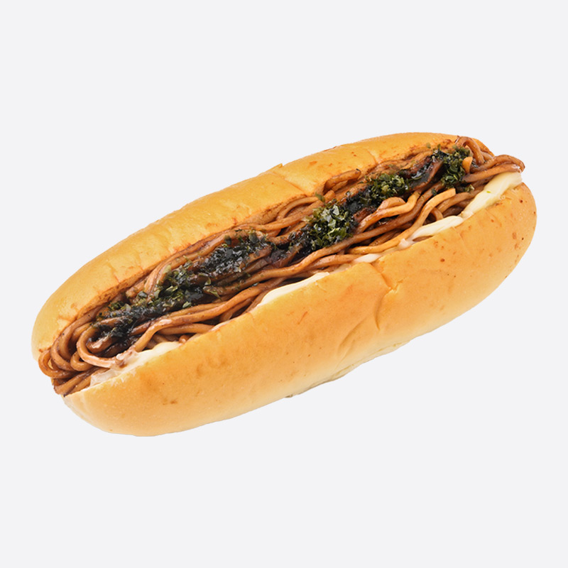 ファミリーマート限定「日清焼そばU.F.O.」コラボ商品。「日清焼そばU.F.O.」の味わいをイメージした濃厚ソースを使用し、さらに特製ソースを焼そばの上に後がけして、濃厚な焼そばパンに仕上げました。