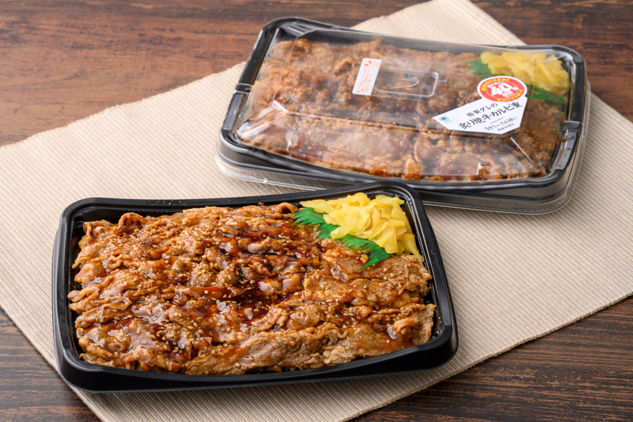 今回のおすすめは、「増量 特製ダレの炙り焼牛カルビ重」!直火で炙った香ばしい香りの牛カルビ肉に、香味油を使用した風味のあるタレをトッピングした牛カルビ重です。「だいたい40%増量作戦」3週目の対象商品です。