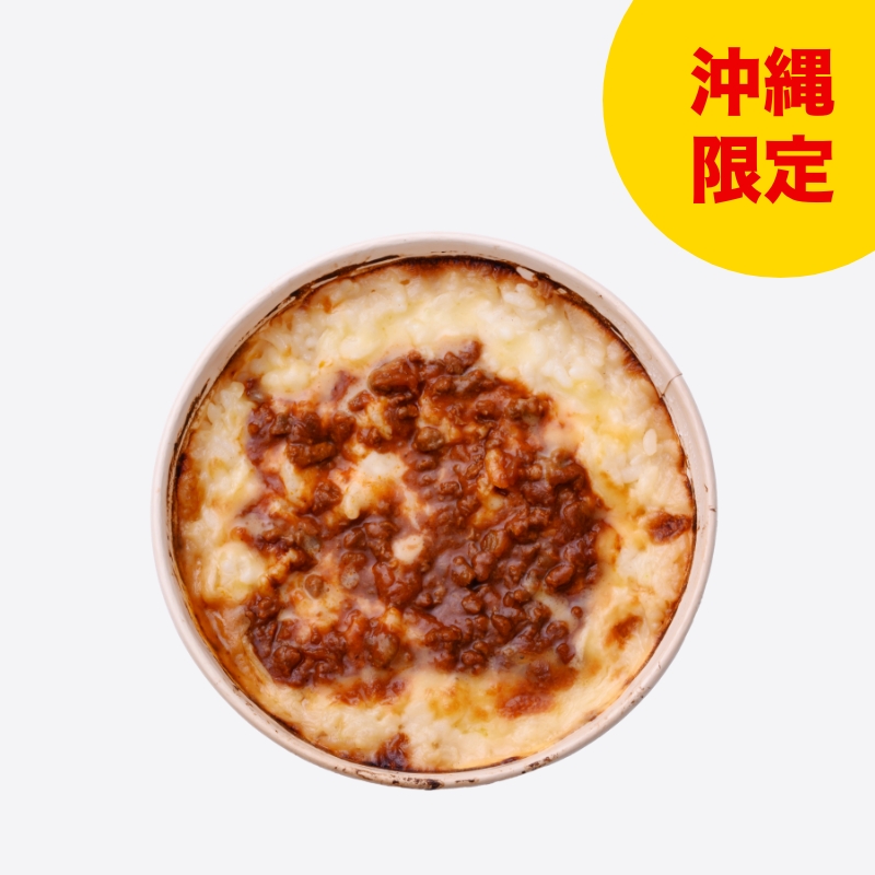 バターライスに自家製のホワイトソース、ミートソースをトッピンして焼き上げました。