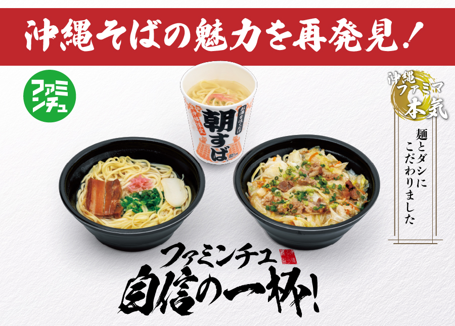 本島、離島を含めた沖縄県内333店舗のファミリーマートでお買い求めいただけるので、ぜひ本格的な『沖縄そば』『野菜そば』『朝すば』を楽しんでいただきたいと思います!